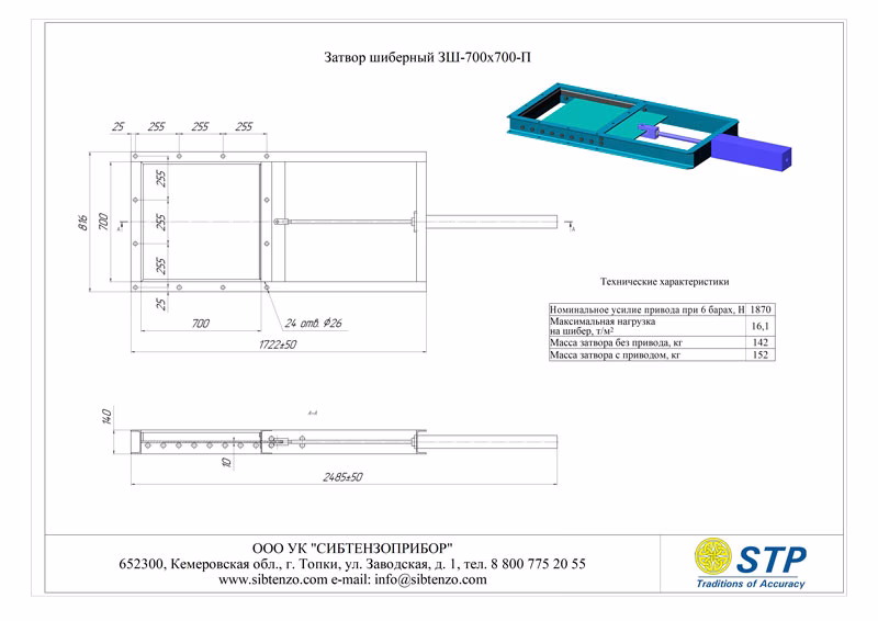 Наименование Габариты проходного окна шибера, мм Состав затвора шиберного ЗШ Масса Максимальная нагрузка на шибер, т/м2